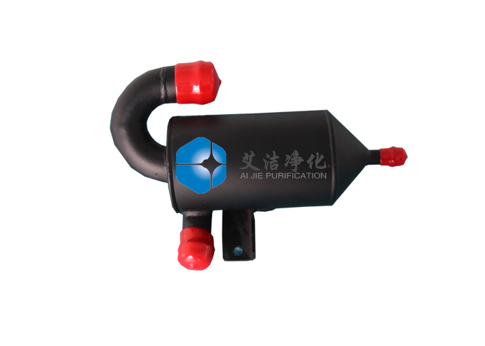 艾潔凈化生產(chǎn)的旋風(fēng)式油氣分離器是讓氣液混合氣經(jīng)過切向進氣道或是螺旋進氣道進入分離器內(nèi),使混合氣在分離器內(nèi)旋轉(zhuǎn)運動,以此產(chǎn)生離心力來實現(xiàn)油滴的分離,它的分離機理與主動離心式油氣分離器相同,只是不需外界提供動力。